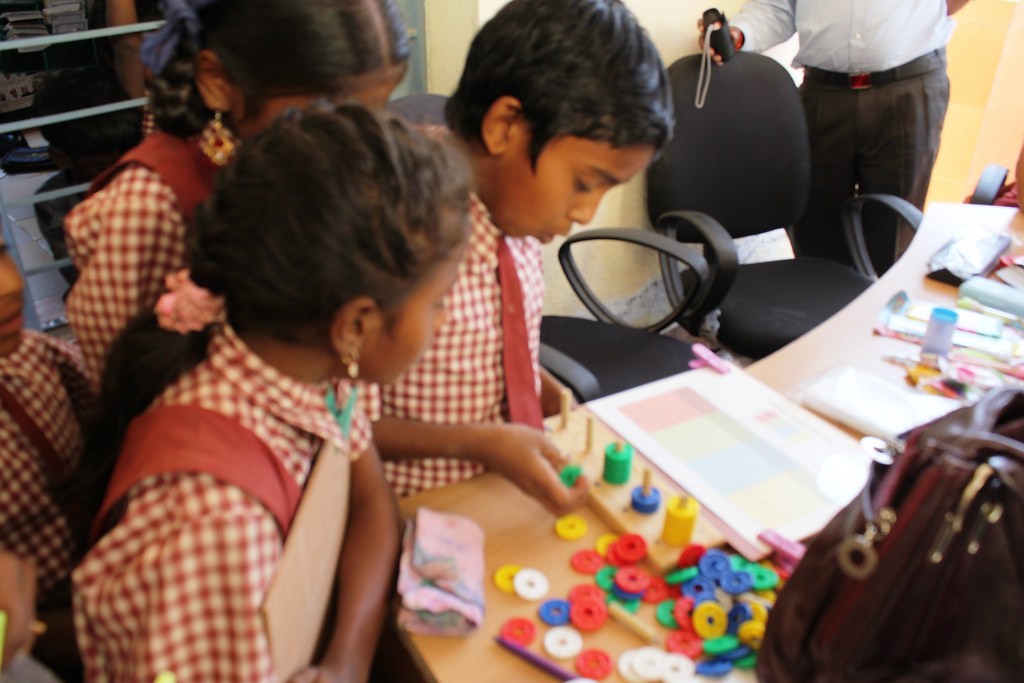 Image 2.4: “India: Student uses manipulatives to solve a math problem”by GGlobal Partnership for Education is licensed under